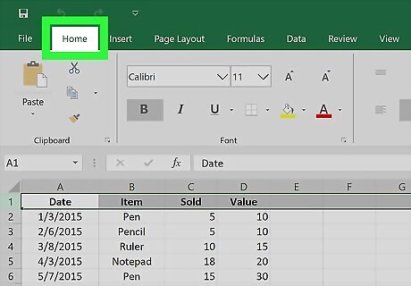 Click the Home tab. You'll find this in the editing ribbon above your document.