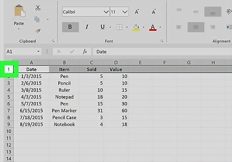Click the row you want to change. You can click the row number to select the entire row. The row should highlight to indicate that it's selected. You can select multiple rows by dragging your mouse over each row.