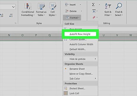 Click AutoFit Row Height. You'll see this listed under the "Cell Size" header. In the mobile app, tap AutoFit Row Height and your cells will automatically adjust. You can also double-click a row boundary in a selected row to auto-fit the content.