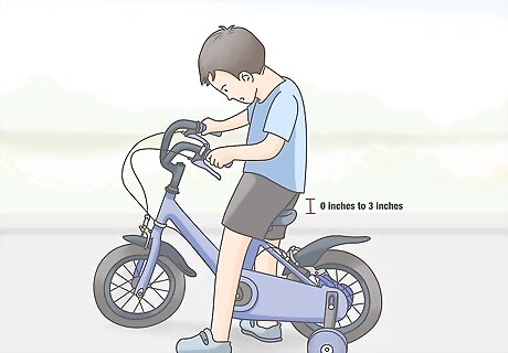 Make sure your child can touch the ground on a bike with training wheels. When children ride bikes with training wheels, many want to be able to put their feet flat on the ground. At minimum, your child should be able to touch the ground with their tiptoes. This means the seat height should be between 0 inches (0 cm) and 3 inches (7.6 cm) above their inseam height.