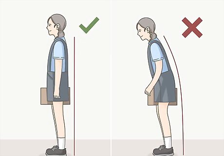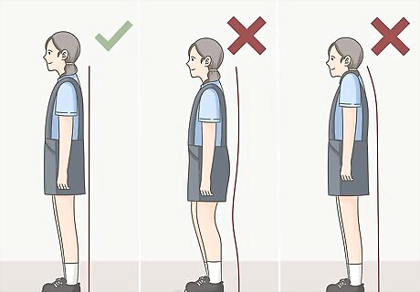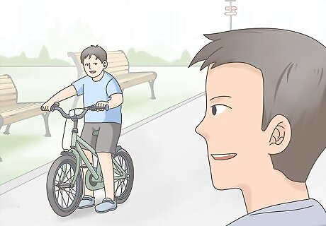 Ask your child to stand straight against a wall in shoes. In order to measure your child at the same height that they will be when they ride a bike, they should be wearing shoes. Have them stand straight against a wall, with both feet flat on the ground. Your child should not be bending their knees or pushing up their shoulders. A natural, relaxed posture will give you the most accurate measurement.