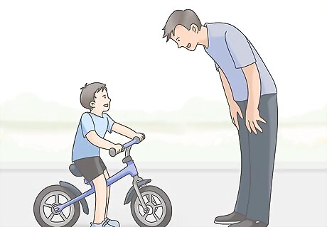 Check that your child can keep their feet flat on a balance bike. If you are choosing to use a balance bike as your child’s first bike, it’s important that they can set their feet completely flat on the ground while sitting in the seat. Their knees should bend slightly as they sit, so try a seat height that’s 1.5 inches (3.8 cm) less than their inseam. Since balance bikes require children to use their feet on the ground, getting a fit that allows them to be flat is essential.Balance Bikes vs Training Wheels: There has been recent debate over the merits of balance bikes versus training wheels. Many people now prefer balance bikes, because they help kids transition to pedal bikes more easily. However, training wheels can be removed instead of being replaced, and they give a child more practice pedaling while doing some balancing, too. It’s up to you which bike your child learns to ride on.