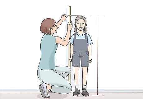 Find your child’s height while they are standing there, too. While your child is already standing straight up against the wall, you should find an up-to-date height measurement. Simply use the measuring tool to find the distance from the floor to the very top of the back of their head. The book can be set aside, as it isn’t necessary for this measurement.