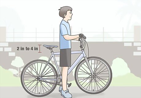 Look for a height that lets your child use their tiptoes on a second pedal bike. When your child is ready for a second pedal bike and knows how to start and use brakes with ease, find a seat height that allows them to touch the ground with just their tiptoes. Since they can use brakes, they should rarely need to use their feet to stop. For sizing this, choose a seat height that is 2 inches (5.1 cm) to 4 inches (10 cm) higher than your child’s inseam.