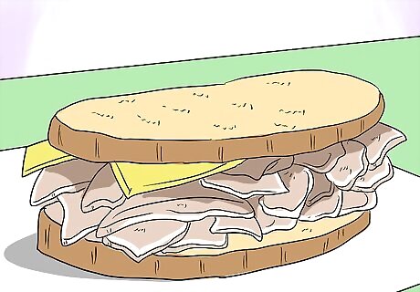 Eat lightly. Try to avoid eating anything heavy or rich within two hours of going to bed. Your body works hard to digest fatty good, and it may keep you up. The same goes for spicy or acidic foods as they can cause heartburn or stomach pain. If you are hungry when you go to bed, consider eating a light snack. Bananas or half a turkey sandwich make good snacks. Warm milk may also help you feel more full, while also contributing to your sleepiness.