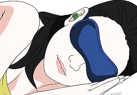 Wear an eye mask and a pair of earplugs. If you cannot change your environment to be quieter and darker, then use these to block everything out. Cheap earplugs and eye masks may not be as comfortable as higher quality ones. Some people may find that it is difficult to sleep with these items on. This may be due to the fact that the cheap materials or design are uncomfortable.