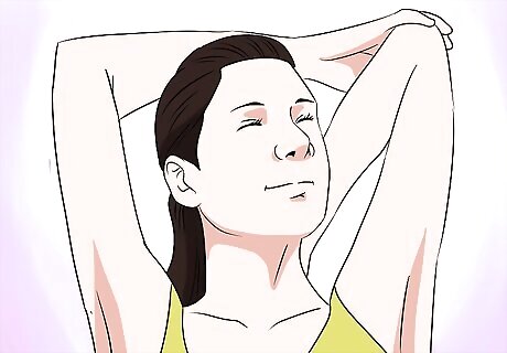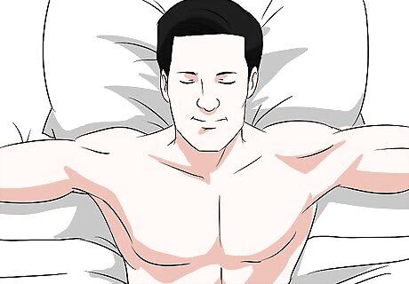 Use breathing exercises. While you lay in bed, put your arms at your side. Monitor your breathing and watch your abdomen move up and down as you breathe. As you breathe in, tense a part of your body such as your leg muscles. When you breathe out, relax that part of your body. Do this from your head to your toes. Take a meditation class, so that you can learn esoteric breathing techniques. Talk to your doctor or therapist to learn exercises for breathing.