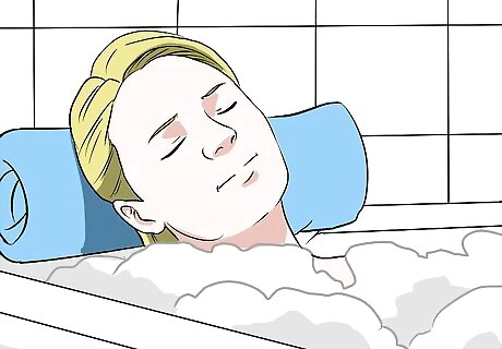 Take a hot bath. Taking a long bath will help relax muscles and relieve pain. Avoid showers as they wake you up instead of helping you sleep. Part of this may be due to the fact that many people associate showering with getting up in the morning. Adding a few drops of essential oils, such as lavender, can help relax you.