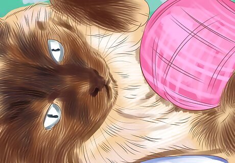 Use a Feliway diffuser in the cat’s room. Feliway is a synthetic version of a pheromone that’s given off by a nursing mother cat to help her kittens feel safe and secure. Releasing feliway in a cat’s environment can help it to destress and feel emotionally supported. Plug the diffuser into an outlet in a calm area where the cat spends most of its time. You can also purchase feliway in spray form.