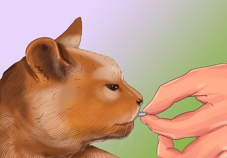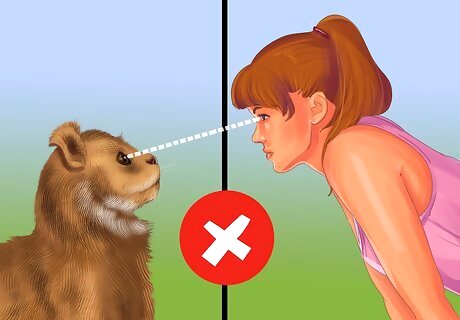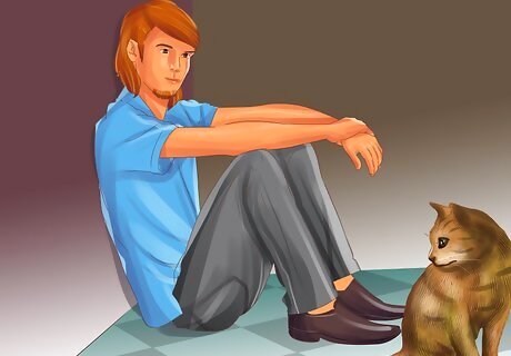 Do not stare at your cat. While you may be staring at your cat out of interest, or trying to pique its curiosity, it may be seen as a sign of hostility by your cat. Direct eye contact between cats is a sign of aggression, and may indicate that the aggressor is about to attack. If you find yourself having eye contact with your fearful cat, blink your eyes slowly. This is a sign of love or trust between felines. The gesture will communicate compassion, rather than aggression, to your cat. You may also make eye contact with your cat when bringing it food, water, a treat, or toys. Your association with these pleasant objects will lead the cat to trust you and become less shy.