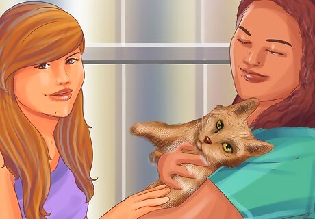 Socialize your cat with new people. Once your cat is comfortable in your presence and no longer acts shy, you can begin to introduce new people—e.g. your friends and family—to the cat. Let the cat approach and smell the new person as soon as they’ve entered your apartment. Give the person one of the cat’s favorite toys or a dish of cat food, so that the cat can gradually begin to interact with the visitor. Make sure to arrange the socialization in a neutral, quiet environment. If the cat is uncomfortable at first, it will retreat to a hiding place, and later emerge to meet the stranger. Follow similar steps if you would like to socialize your cat with a child. Let the child know that they will need to be quiet and move slowly around the cat, and discourage them from playing aggressively with the cat.