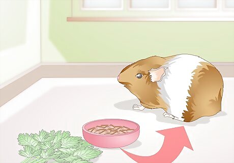Monitor your guinea pig’s appetite. If your guinea pig’s foot sores are bothering him, it may stop eating. This could be because it can’t physically get to its food anymore, or the pain has affected its appetite. With a decreased appetite, your guinea pig may start to lose weight.