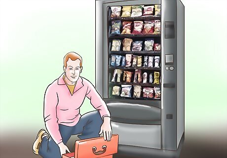 Buy the right vending machine at the right price. There are tons of different vending machines out there and they are all different. Narrowing it down to four main types, you'll find they consist of: Snack vending machines: These are machines that sell mainly food and are often placed next to a drink machine. The newer machines will often have credit card readers which are really easy to set up and can add great value to your machine. Soda vending machines: These are the most popular style of vending machine but may often times be old, outdated, and very limited on their abilities. You can steal a great location by being able to offer an updated soda machine that can vend the newer bottles, Red Bulls, water, Gatorade, etc. Offer credit cards and you will be bumped up a notch again. Combo vending machines: These are machines that sell both snacks and drinks all in one and take up much less space and energy. They work well in office settings or smaller businesses what don't warrant having two full size snack and soda machines. Bulk candy vending machines: These are your traditional gumball or M&M machines. They work best in malls, restaurants, barber shops, and the like; they are usually pretty easy to place.