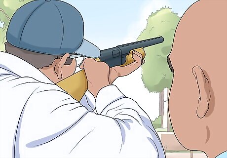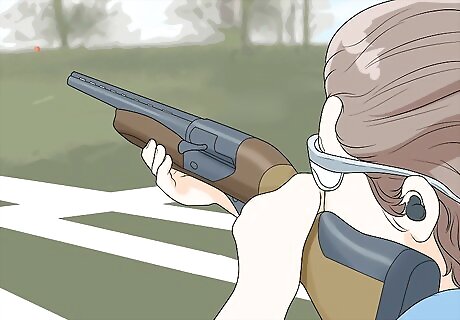 Learn about gun safety. Never point your gun towards a living thing or object and always assume that your shotgun is loaded, even if it isn't. Do not put your finger on the trigger unless you're ready to shoot and always act serious and responsible when holding your gun. If you'd like to learn additional gun safety rules, you can take a safety or shotgun-specific course at a local shooting range.