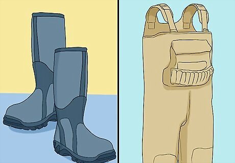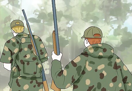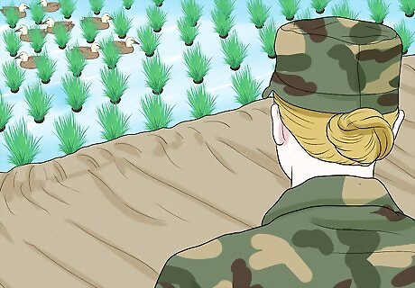 Buy high boots and waders so you can retrieve the ducks. Waders are water repellent overalls that will keep your body dry. If you're hunting over a lake, you'll have to wade out into the water to retrieve downed ducks. Boots will prevent your shoes and socks from getting wet. This is critical if you plan on hunting in the cold weather. You can typically purchase waders in a similar camo as the rest of your gear.