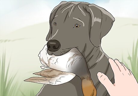Train your dog to retrieve downed ducks if desired. Labrador Retrievers, English Setters, and English Springer Spaniels are the ideal dog breeds for hunting. You can buy a dog and train it yourself or you can find a breeder or trainer that has pre-trained dogs. To train your dog, you'll have to simulate hunting scenarios and get your dog acclimated to certain commands and the scent of a duck. While having a retrieval dog isn't necessary, it will make getting the birds you down much easier.