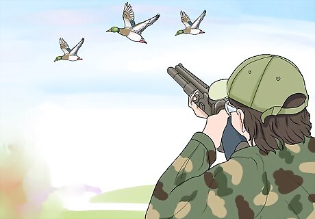 Practice shooting at a clay or skeet shooting course. A clay or skeet shooting course will let you practice shooting the gun before you start hunting. These courses fire clay targets into the air to emulate ducks. Practicing at a range will make your more accurate when shooting at the real thing.