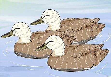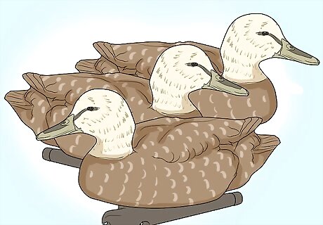 Purchase duck decoys. Decoys are hollow plastic models that float in the water and resemble ducks. If you know what species of duck you’re hunting, get a decoy that’s the same species to attract them to your hunting site. If you’re unsure of what kind of ducks you’re hunting, mallard decoys will typically attract most species of ducks.