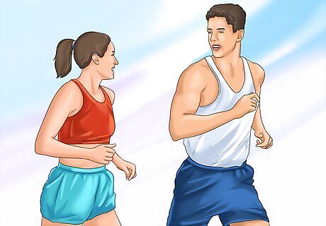 Incorporate a moderate-intensity workout three to four times per week. Take a class or schedule a gym session before you get too busy. If you like to work out at home, purchase a used treadmill and walk/run as you watch TV. If you are 60 or older, stick with low-intensity workouts, like walking and swimming, but try to increase your pace slowly. Maintain at least 10 minutes of exercise at a pace where you find it hard to keep up a conversation during your workout.