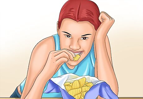 Keep a food journal. For the first month, write down everything that you eat. Recording your diet will make you mindful of what you eat and also make you feel accountable if you sneak in unhealthy options.