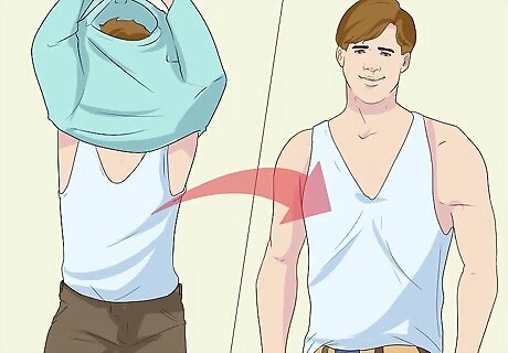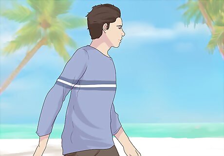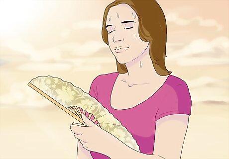 Remove layers. If you have layered clothing on, remove excess layers. Place them in your bag or just carry them by hand. For example, if you’re on a hot weather walk and you’re wearing a sweater, remove it and roll it up. Carry it by hand or throw it over your shoulder.