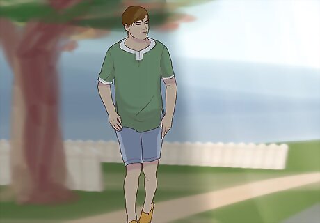 Give yourself time to acclimate. Take it easy when exercising in hot weather, especially if you do not typically walk or work out in hot weather. Start slowly at first, and gradually increase the intensity and speed of your walk. If you do typically walk or workout, but not in heat, adopt a slower-than-usual pace when out on a hot weather walk. Increase your speed after a few minutes if you feel up to it. The amount of time needed to acclimate to hot weather varies from person to person. Hot weather walks will feel uncomfortable, but if you get dizzy, nauseous, or fatigued, slow your pace or consider ending your hot weather walk.