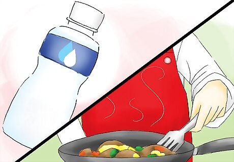 Stay hydrated. It’s vital to your health to stay hydrated by drinking enough. Women need at least nine cups of water a day and men should have at least 13 cups. However, because you often sweat more in tropical heat and humidity, you may need up to 16 cups a day. Make sure to follow the above guidelines on what to drink to prevent illness. If you get dehydrated, get indoors and cool your skin as possible. You’ll also need to make sure you get enough water or other liquids. It’s also important to your health to stay hydrated. Women should drink at least 9 cups of water a day. Men should have at least 13 cups. You may need up to 16 cups of water a day if you are very active or pregnant.