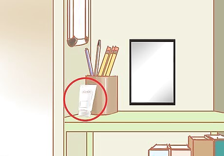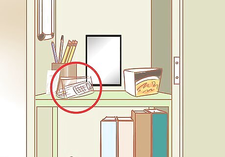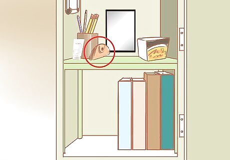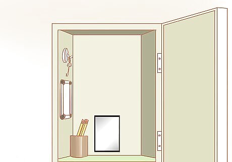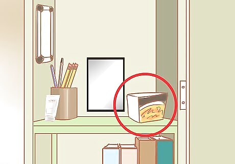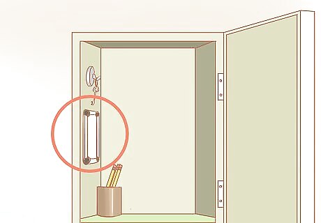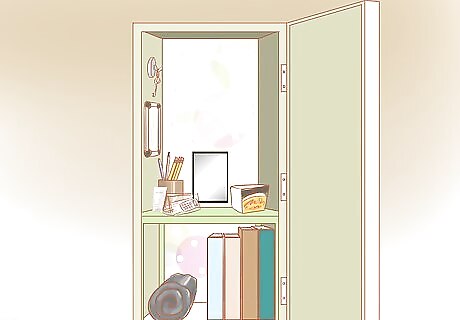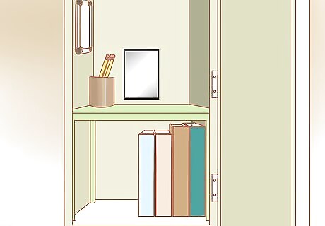 Set aside a mirror and light (optional). A magnetic mirror at eye level lets you check your appearance and reapply makeup during the day. If your locker is dark, a "locker light," reading light, or small, magnetic lamp can make it easier to find supplies. Set these aside and add them after stocking your locker with supplies, so you can find an out-of-the-way spot where textbooks and lunchboxes won't break them. Use a low-power light or a light with a self-timer to avoid starting a fire or melting supplies.