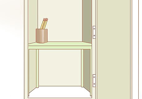 Add a locker shelf. Locker shelves are cheap wire racks that can give you a lot of extra storage space. You can find them at department stores and hardware stores that sell school supplies. Measure the width and height of your locker first before you buy a locker shelf. You can also make a jank "DIY locker" out of three small planks. Lean two of them against the right and left walls of your locker, and place the third on top of them.