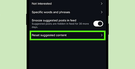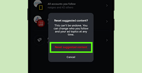 Confirm the reset. Tap Reset suggested content. A confirmation pop-up will appear, reminding you that resets cannot be undone but will not delete your data.