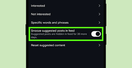 You can also access this option through “Content Preferences” settings. Go to Settings > Content Preferences > Snooze Suggested Posts in Feed.
