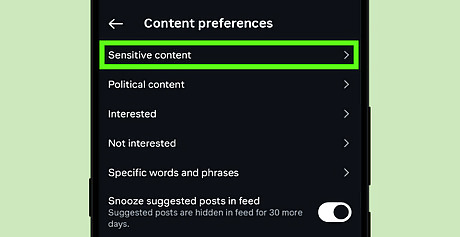 Select Sensitive Content. Tap the “Sensitive Content” option. This is the first option on the page.