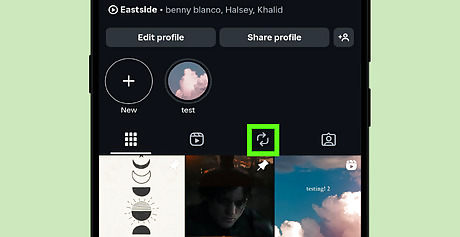 Go to the Reposts tab. This is the ???? icon located next to the Tagged Posts section.