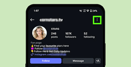 Tap the ⋮ three dots icon. It’s located at the top-right corner of their profile page.