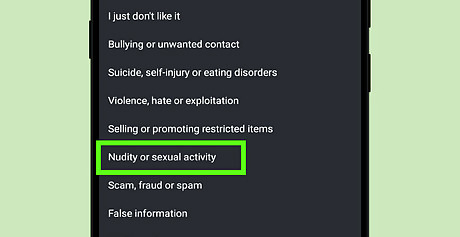 Choose the most accurate option from the list. Instagram provides several, including “Threatening to share or sharing nude images,” “Seems like prostitution,” “Seems like sexual exploitation,” and “Nudity or sexual activity.”