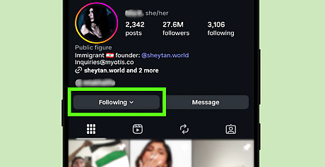 Tap the Following button. You’ll find it next to the “Message” button on their profile.