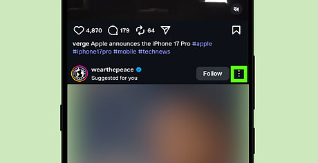 Tap the ⋮ three dots icon on the post or reel. On reels, it’s located in the bottom-right corner, and on posts, it’s in the top-right corner.