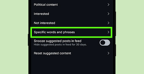 Select Specific Words and Phrases. You can find this under the “Not Interested” option.
