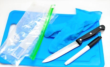 Prepare your work station. Especially if you have lots of peppers to preserve, keeping your work-station organized will prevent confusion and streamline your process. You will need the following items: Rubber gloves A knife Freezer bags A permanent marker