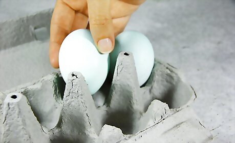 Store the eggs in an egg carton. Since duck eggs are about twice the size of regular chicken eggs, they may not fit as easily in a reused carton. To keep duck eggs in a chicken egg carton, use rubber bands to hold the carton shut. They may fit more easily inside jumbo egg containers. Special egg cartons made for duck eggs can be purchased online for easier storage.