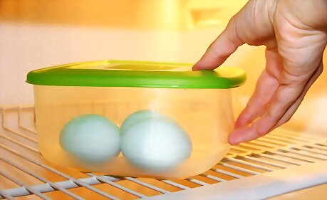 Place the eggs on a shelf so they stay at a constant temperature. If you keep eggs on the fridge door, they will go through temperature changes each time you open the door. To avoid the risk of food poisoning, store the duck eggs on one of the shelves.