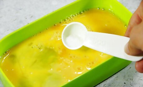 Add ½ tsp (2.5 g) of salt per 1 cup (240 ml) of the mixture to stabilize the yolk. Though it’s not a required, you may want to add salt so the texture of the egg is not affected. Label that you’ve added salt to the eggs so you can adjust future recipes accordingly. You can substitute a pinch of cornstarch or ⁄2 teaspoon (2.5 ml) of honey for a similar effect.