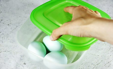 Use a resealable plastic container if the eggs don’t fit in a carton. Use a glass or plastic container that can fit multiple eggs. Be gentle with the container so none of the eggs crack as you transport them or move them around. Keep a lid on the container to keep them protected. Keep them out of contact with other foods so bacteria does not transfer.
