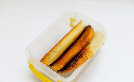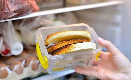 Put the bread in an open container. Once your bread has cooled completely, it’s time to place it in a proper container. A Ziplock bag left slightly open is a great storage option. The slight opening lets out any excess moisture and will stop the oopsie bread from becoming a mushy mess. A tupperware with the lid slightly askew is a great alternative to a Ziplock bag.