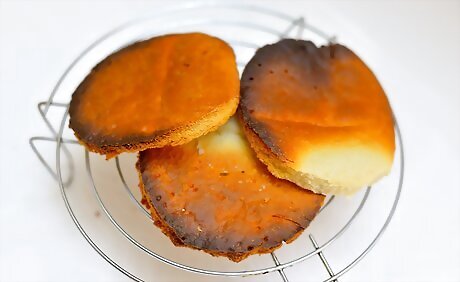 Let the bread cool. Once your oopsie bread comes out of the oven, let it cool completely on a wire rack. You can store your bread on the counter for up to a day. Make sure the bread is cool to the touch before moving on. If you try to store warm bread in a bag, it could end up excessively moist and sticky.