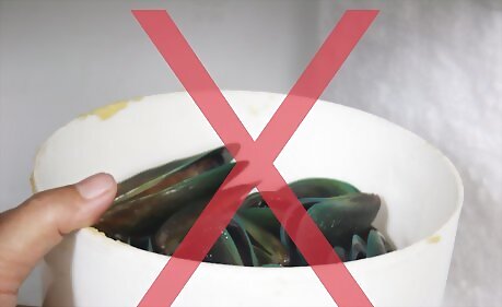 Keep fresh fish on ice. Although a freezer is too cold for fresh fish, a refrigerator is often too warm an environment. The solution is to place your fish on ice (directly, or still wrapped) inside of the fridge. As the ice melts, you’ll need to drain it, so keep this in mind when choosing a storage method. When you purchase fresh fish, it should be in a similar configuration: over ice, in a sealed container. If your fresh fish is not stored properly prior to purchasing it, skip it. Sort through shellfish, and throw away any with cracked or broken shells, as they may have been contaminated.