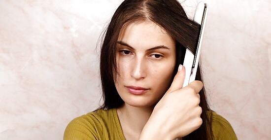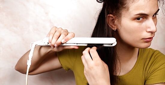 Spray heat protectant on your hair. You are about to use several heat styling tools, so you need to protect your hair to keep it from becoming damaged. You can use a serum, spray, or gel. Choosing one that is anti frizz and specifically designed for flat ironing hair will give you the best protection. Apply evenly all throughout your hair for the best protection. If you are looking for a natural product, look for 1 that contains argan oil -- this is especially good for thick or coarse hair. Try to avoid using products with silicone as these can weigh your hair down, making it look flat (if that is the look you are going for that is fine, but if you want some volume then avoid these products). Lorraine Massey Lorraine Massey, Hair Stylist The key to straightening curly hair without damage is to use the right products and techniques. Be sure to use a heat protectant spray and start with a low heat setting. Work in small sections and take your time.