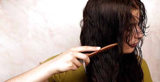 Comb through your hair. Use a wide tooth comb and start at the ends of your hair, working your way up to the roots. Avoid using a brush as this can often snag hair, making it more prone to breakage. If you combed your hair while in the shower, this process should be a lot easier. If your hair is still very tangled, consider spraying a detangler through your hair before you comb through it. You may also decide not to comb your hair again. Instead, use your finger to break up the curls. Skipping the second combing could help reduce frizz.