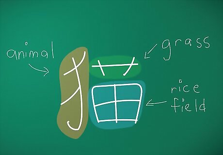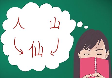 Tell a story with the radicals. An effective strategy in studying is "telling a story" with the radicals, or coming up with a logical story between the radicals that creates the meaning of the whole kanji. For example, the character above 男 (male), is made up of 田 (rice paddy) and 力 (power). An example story: a powerful male worker works in the rice paddy. Mnemonics with kanji readings are also helpful.