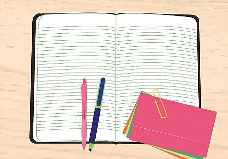 Get equipped with study materials. Before you start studying, make sure you have the right tools to study kanji efficiently and effectively. The physical tools you might need are simple but essential, and will include at least: Writing utensil Notebook Index cards